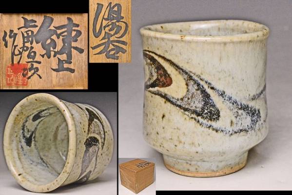 - 上田恒次 ★ 練上湯呑茶碗 ★ 共箱 ★ 検 河井寛次郎 人間国宝 富本憲吉 ★
