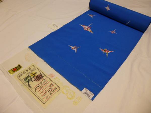 - 七五三祝着に★新品正絹反物★京友禅小紋着尺★青地に折り鶴柄です