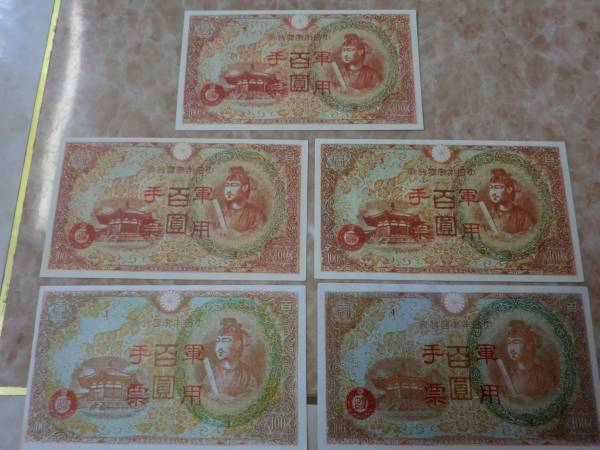 - ★ 日華事変軍票 丙号(異式)100円 未使用~極美品 5枚 ★ No.10