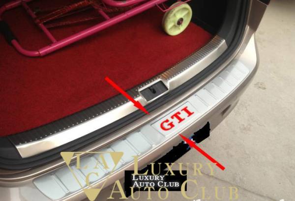 - VW ゴルフ7 MK7 GTI リアバンパープロテクター 保護 カバー アルミ調 エアロ メッキ 外装カスタム トリム カバ-高品質 専用設計