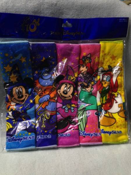 - 東京ディズニーシー 10周年 ミニタオル5枚セット 新品