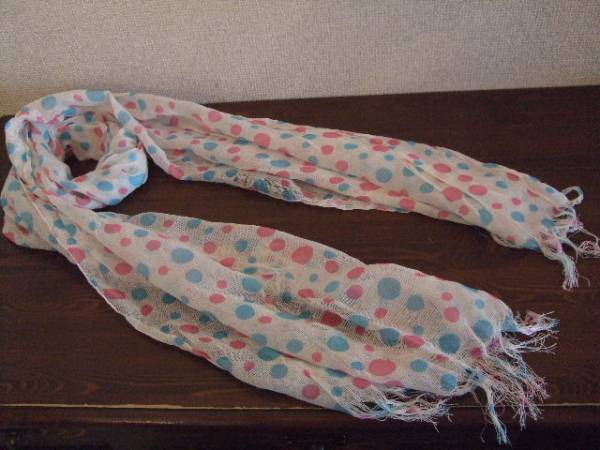 - ピンク×水色ドット白ガーゼ素材ストール(USED)43015