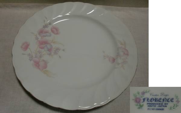 > ★レトロ DAITO JAPAN 金縁 花柄 大皿 プレート 径28.2cm 陶器 工芸品★