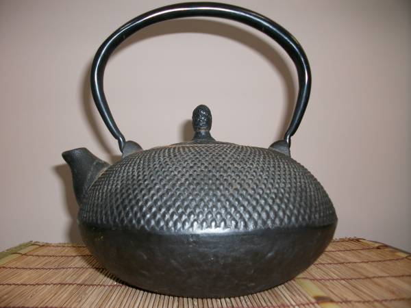 - ☆【激安大特価/茶道具】見事な南部鉄瓶 小霰松実摘 ずっしり 曲線 T-18