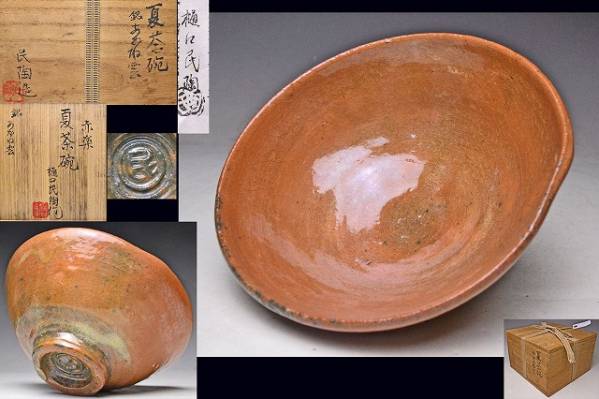 > 樋口民陶 ★ 赤楽夏茶碗 ★ 銘『あかね雲』 ★ 共箱 ★ 希少作家 ★ 数寄者