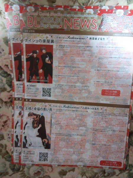 - フリーP「コミコミBL NEWS2015/1」秋葉東子六青みつみ他インタ