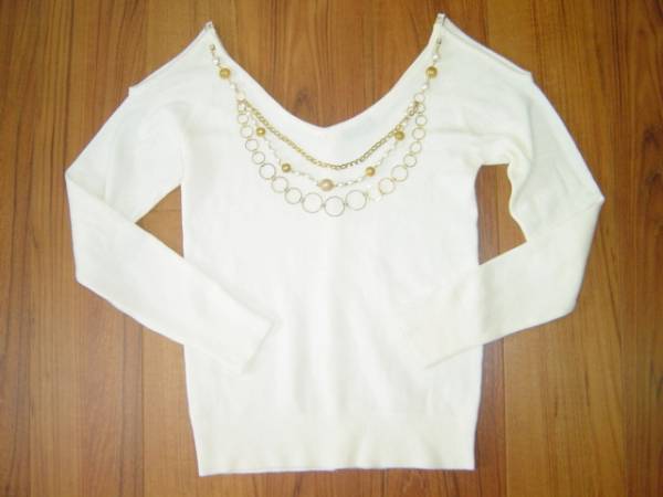 - 新品SPIGAスピーガ◆アクセサリー付肩見せセクシー長袖ニット白