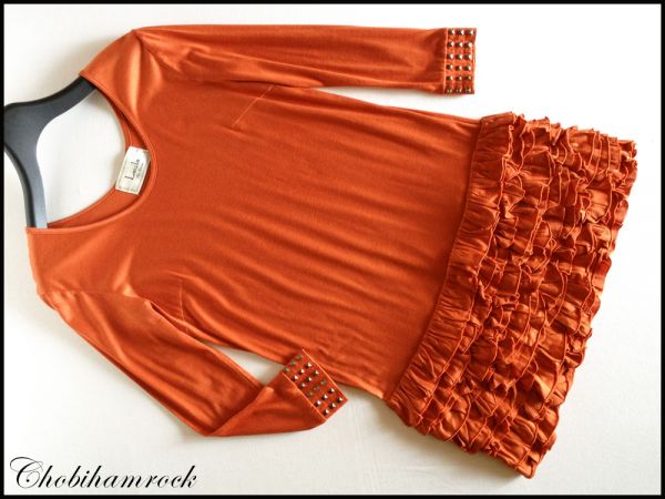 - ラウラLaula長袖ワンピーススタッズフリルFREE濃オレンジ系