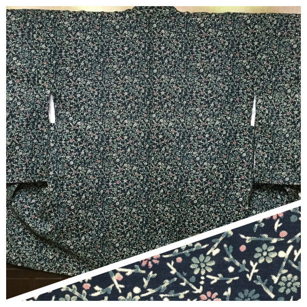 - 【羽織】ウール 袷 着丈76.5cm 藍小花 躾有り リメイク 081404