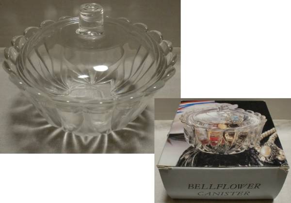- ★HASEGAWA GLASS 長谷川硝子 ガラス製 桔梗 ききょう キャニスター 小物入れ 径13.2cm キャンディーポット 鉢 容器 工芸品