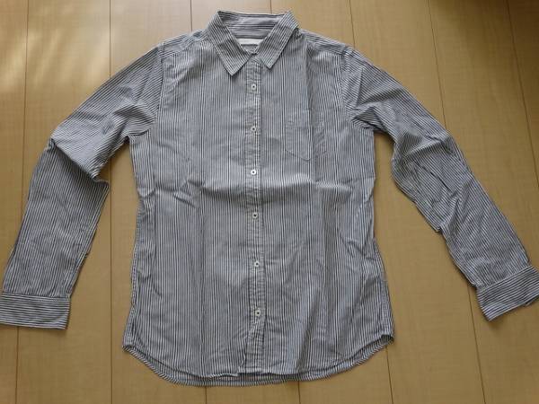 - ③USED美品★LOWRYS FARMブラウス★グレー×白縦縞Mサイズ