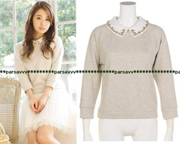 - 新品紙タグ付き*レストローズ*カタログ掲載*衿ビジュー スウェット プルオーバー キナリ2 トレーナー