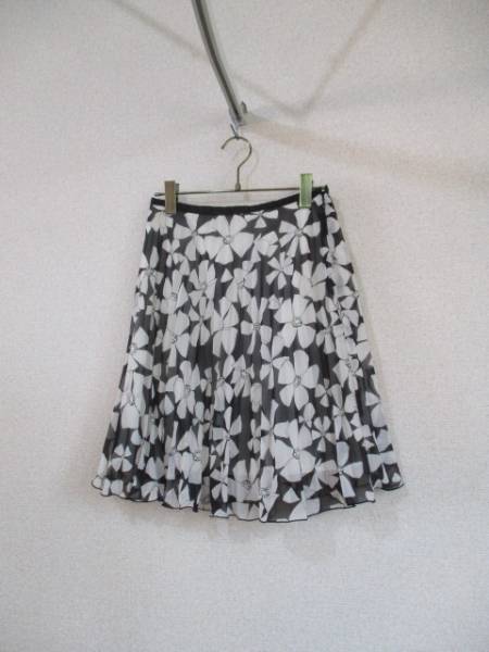 - CLICHY黒×白花柄シフォン膝丈スカート(USED)73116)