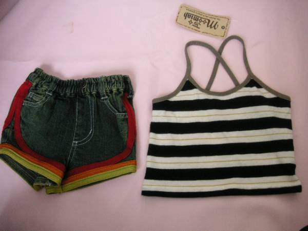 - おしゃれなセットアップ 80cm ショートパンツ&キャミ ◆J254