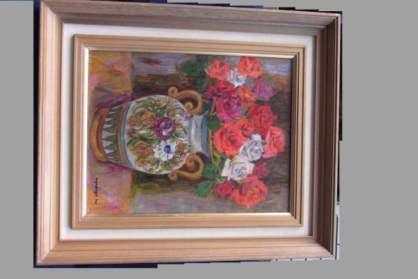 - No200【真作】F6号油絵 永島 康三「ばら」