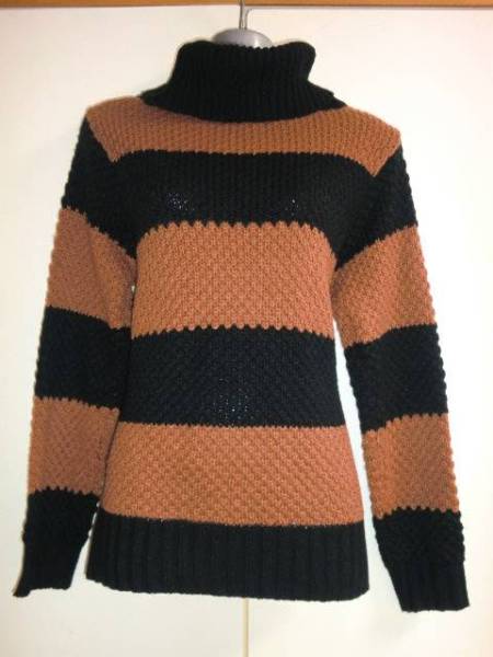 - ★最終値下げ★最安未使用おしゃれ網黒茶タートルネックボーダーニットセーター<M~L>★切手★