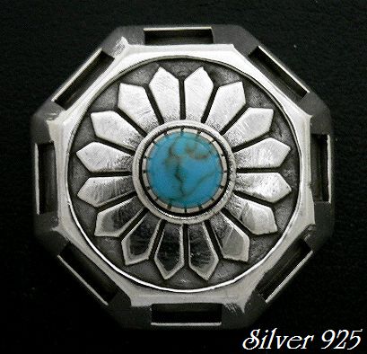 - シルバー925銀の天然石ターコイズ入り家紋風オクタゴン コンチョ