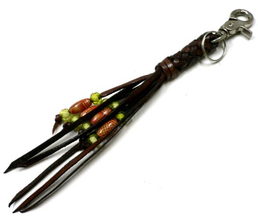 - 牛革 丸編みレザー キーホルダー/こげ茶/ストラップにも◎ラスト1個