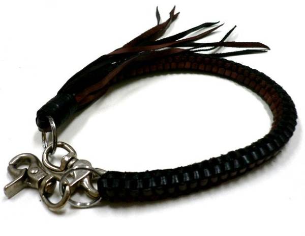 - 牛革9本スクエア編み込みウォレットチェーン極太/黒×こげ茶/ラスト1個