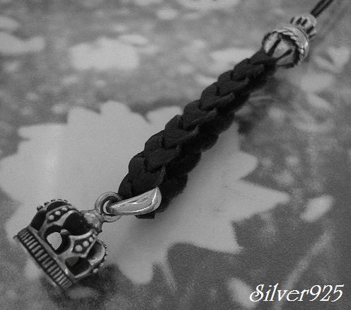 - シルバー925銀の王冠クラウン ヘッド付き 牛革レザー ストラップ/黒・茶2色より