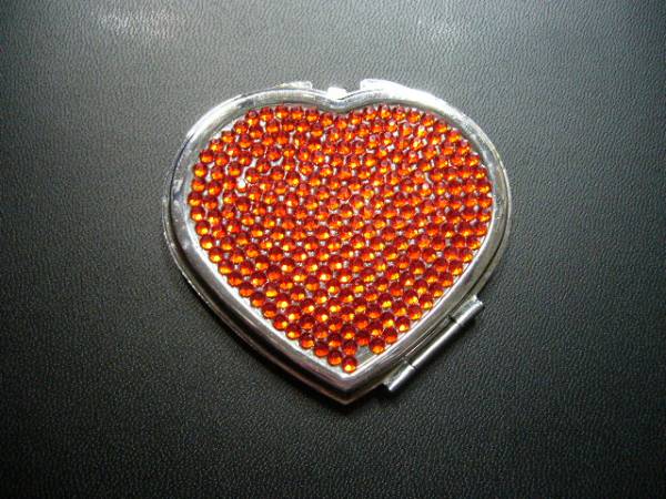 - ..コンパクトミラー ハート ラインストーン ストーン1個無し 中古