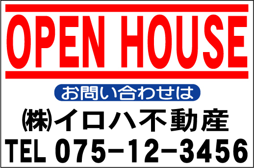 - 社名入付不動産募集看板「OPEN HOUSE」Lサイズ60x91cm
