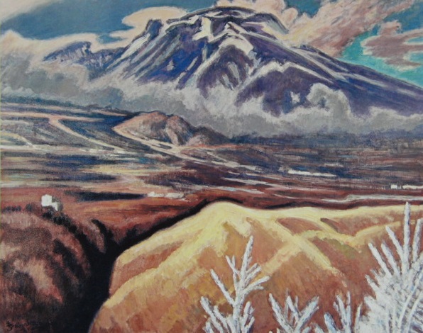 - 小山敬三、浅間山初冬、限定希少画版・大判コロタイプ、信州名画、新品高級額装付、送料無料