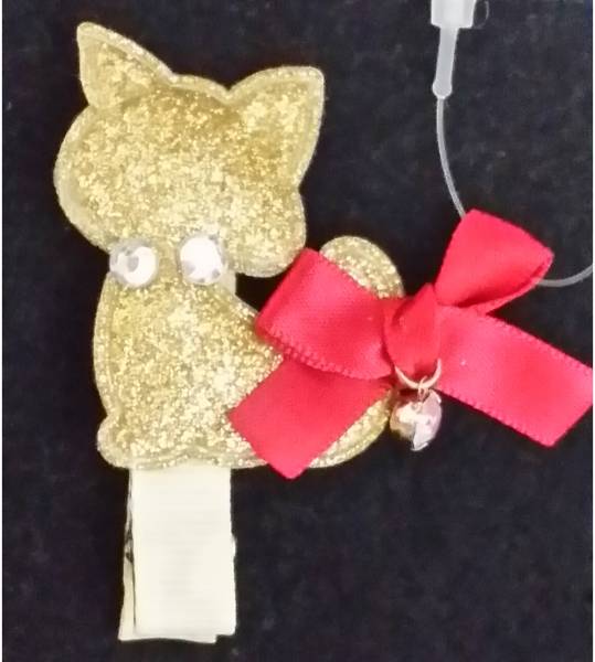 - 822◇リボン付きねこヘアクリップ ラメタイプ 金 ゴールド axes femme kids アクシーズファムキッズ KJ649X03KO アクセ アクセサリー