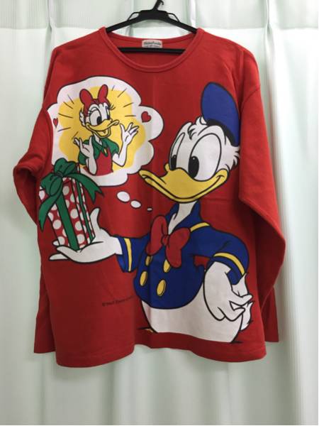 - ★美品 ディズニー 大判トレーナー L~LL ドナルド&ディジー Walt Disny Company正規品 コットン 男女兼用 赤