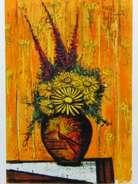 - B・ビュッフェ、中国の花瓶の花束、超希少画集画、新品額装付、iata