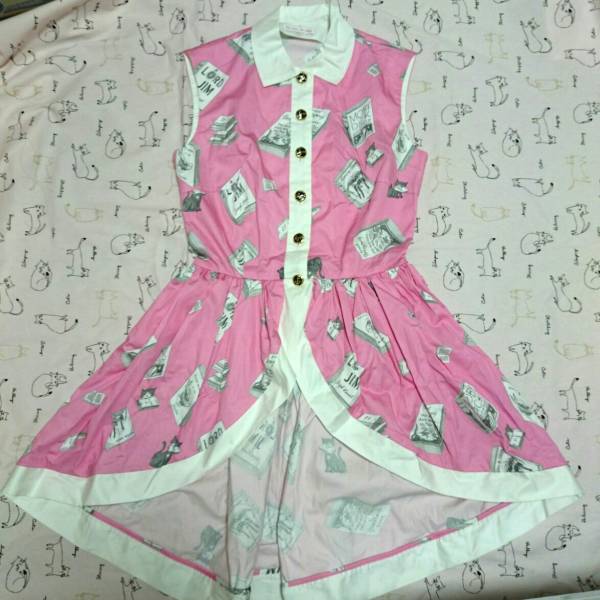 - Olympia Le Tan ブック柄 ワンピース オランピアルタン 猫 ネコ ピンク 白 ホワイト 襟 オリンピアルタン