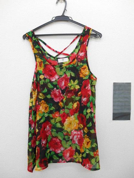 - ★r・p・s シフォンノースリーブ カットソー バッククロスデザイン お花柄 【M】