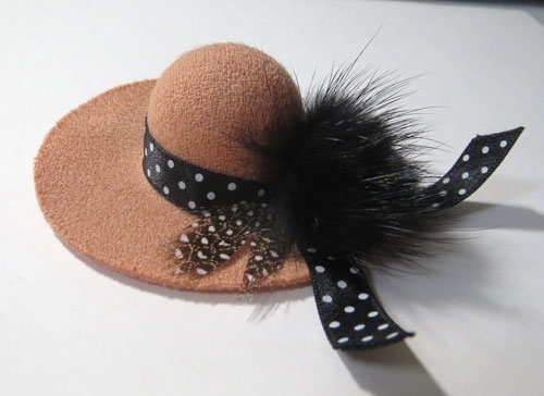 - ■sin_013 昭和レトロ アンティーク コスチュームジュエリー ブローチ 帽子 サーモンピンク 羽根