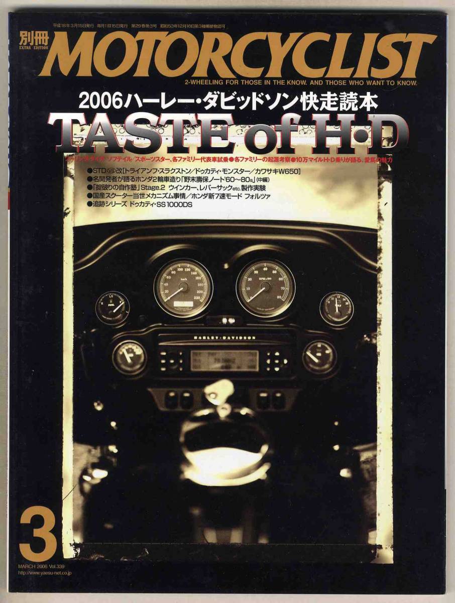 書名/記事: 06.3 別冊モーターサイクリスト/2006ハーレーダビッドソン快走読本、トライアンフデイトナ675、ヤマハFZ1フェーザー、ドゥカティSS1000DS/SS800、…