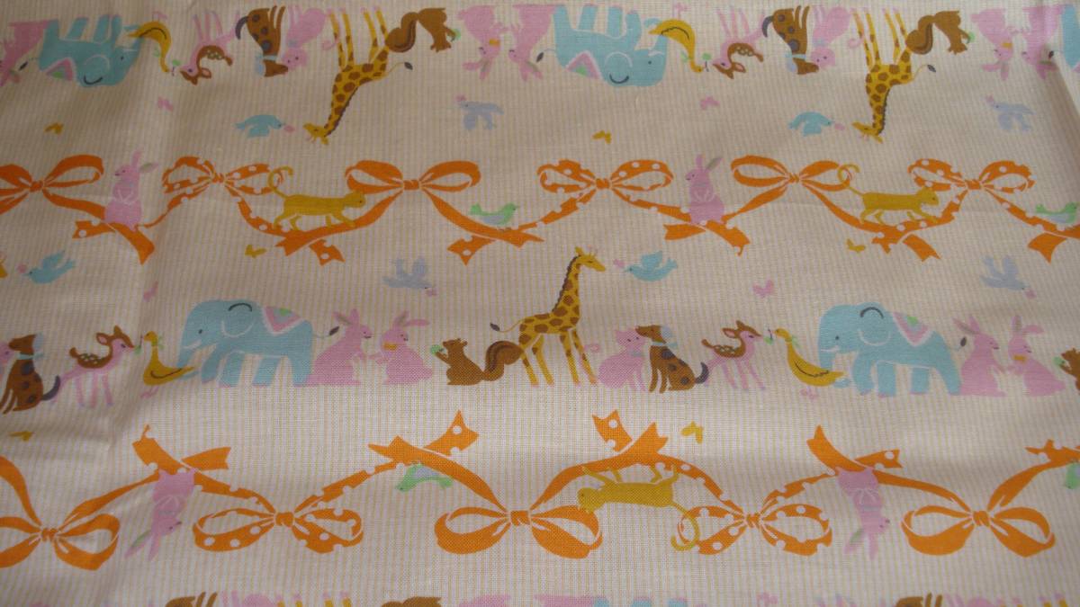 - 「サーカス・アニマル・ボーダー・ストライプ」(クリーム系)約50×50cm/バンビ・うさぎ・犬・ねこ・ゾウ・キリン・アヒル