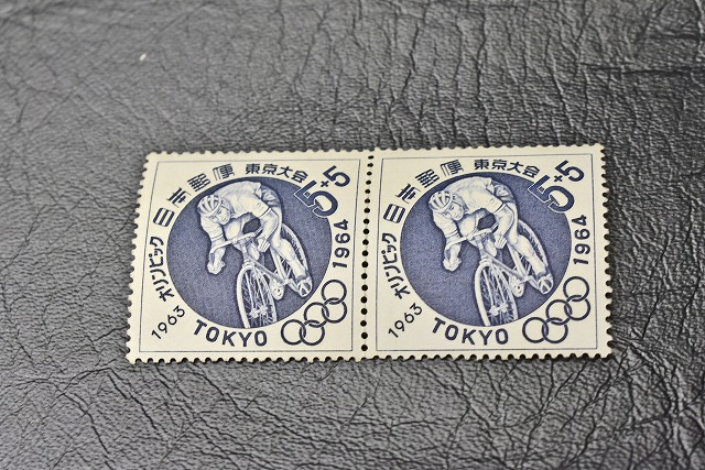> 【切手】 オリンピックシリーズ ・1964年 東京オリンピック 自転車 5+5円x2枚 未使用