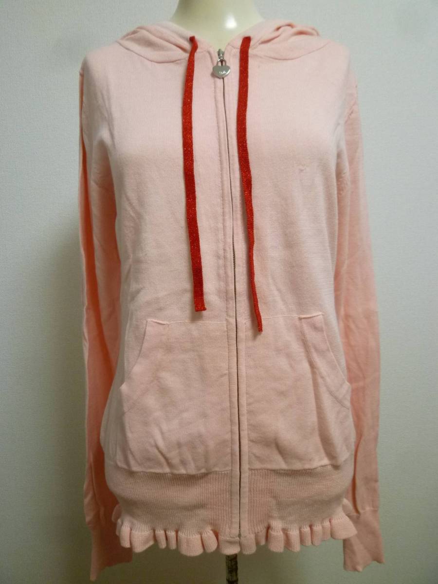 > 【新品/未使用タグ付き】Barbie/バービー◆淡ピンク裾フリルニットパーカーM/ハートチャーム付き◆JK1013
