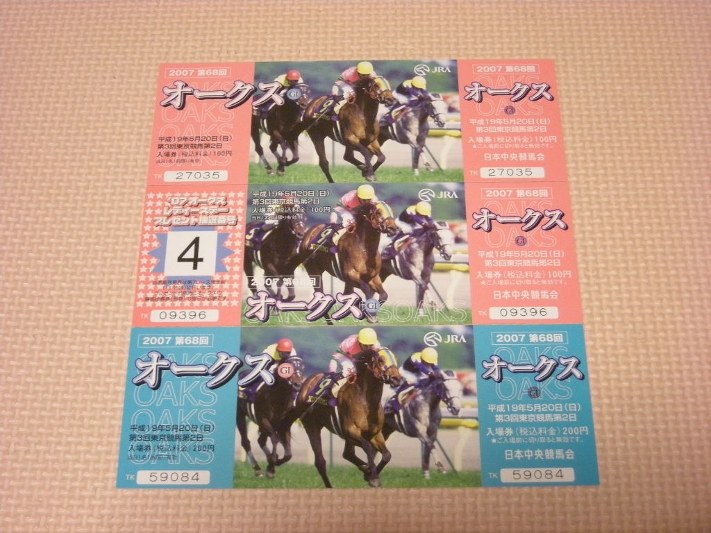 - JRA 記念入場券 3枚 2007 オークス ローブデコルテ カワカミプリンセス