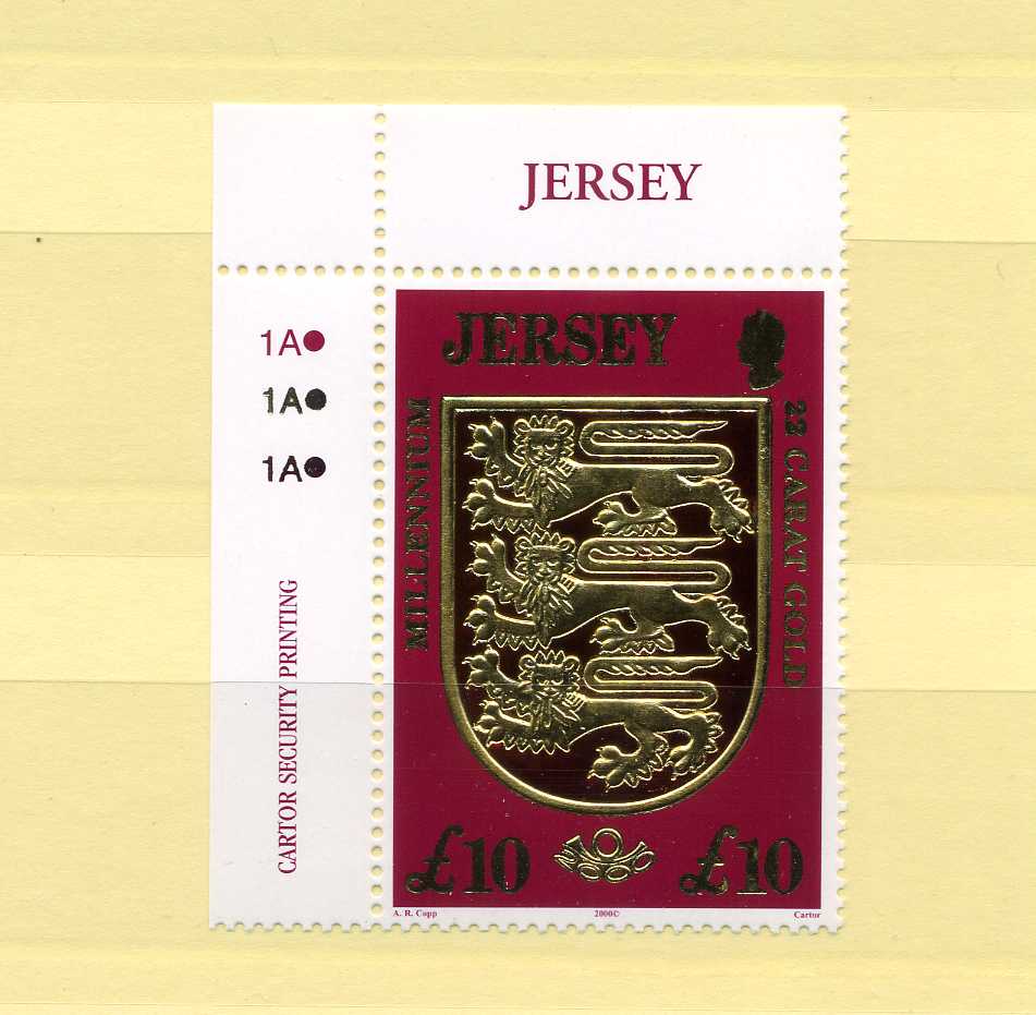 > 英領 ジャージー JERSEY 2000年 1月1日◆紋章 未使用 MNH 1種完 22K GOLD 高額面 10 ポンド 綺麗 送料無料 ◆p-236