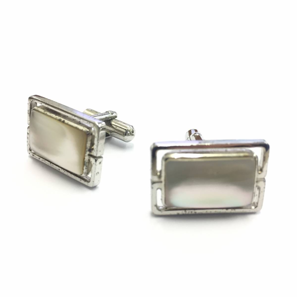 - 【カフス】約1.3×2cm pm.p GRANDE.A 刻印 シェル(貝)のような色合い シンプル シック 高級感 クール ダンディ