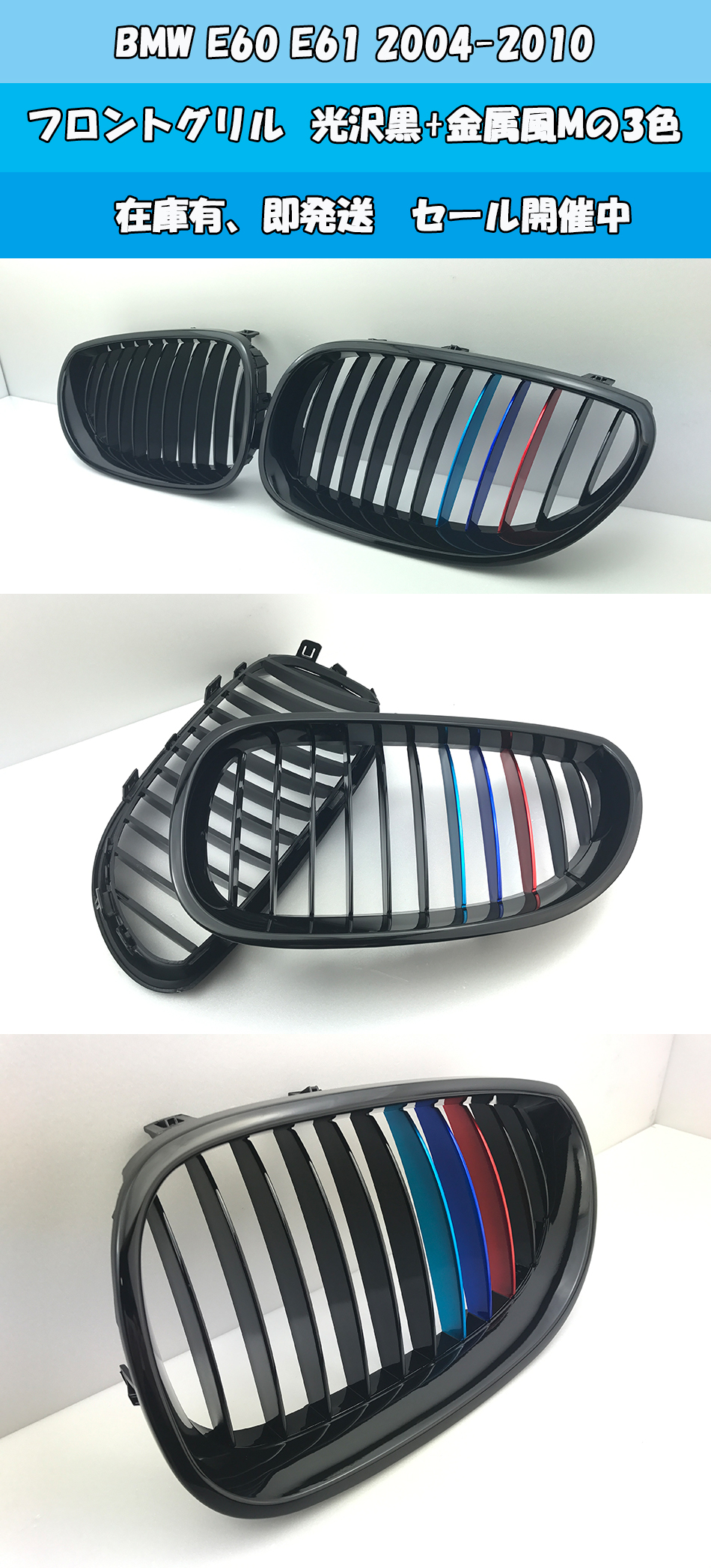> 純正交換用 左右セット 取付簡単 在庫有 BMW E60 E61 フロントグリル 光沢黒+金属風Mの3色 ABS 2004-2010
