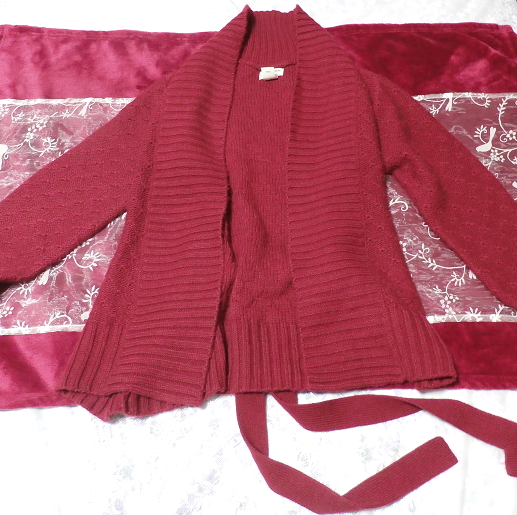 > 香港製赤紫ワインレッド色帯付きカーディガン/羽織 Made in Hong Kong red purple wine red color cardigan/coat