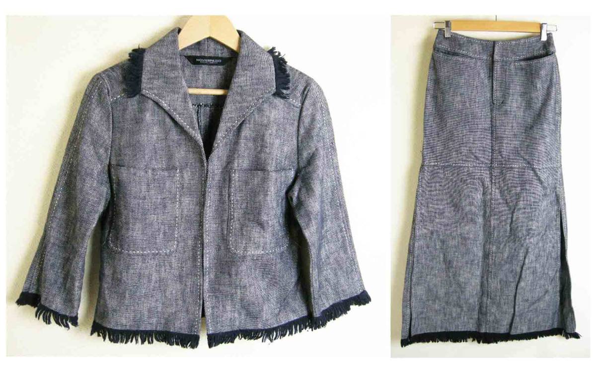 - ■NOVESPAZIO【ノーベスパジオ】グレー系 ステッチ フリンジ ジャケット ロング スカート セットアップ 38