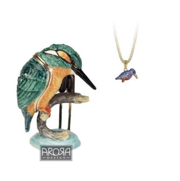 - ARORA カワセミ 鳥 小物入れ フィギュア & ネックレス