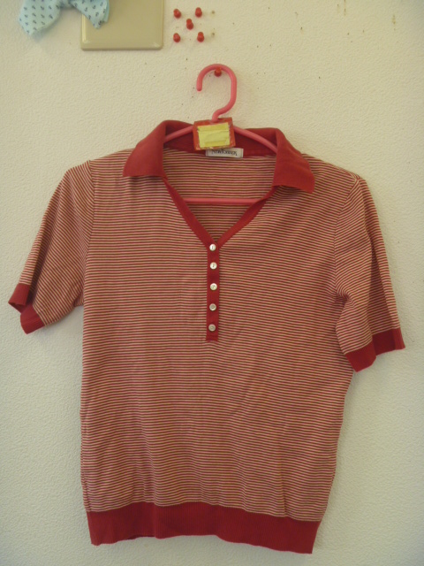 - ●レディースLサイズ〔NEWYORKER〕赤×白 ボーダー柄☆半袖ポロシャツ