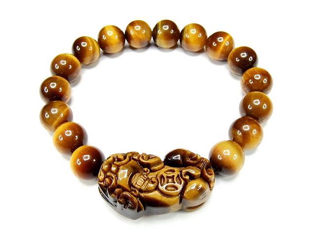 - 石街御守財運天然石上質タイガーアイヒキュウ彫り10mmブレスレット 石街