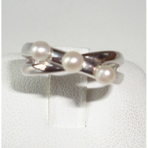 - 送料無料 pt900パール約3.2mm3珠付きデザインリングused 質屋出品