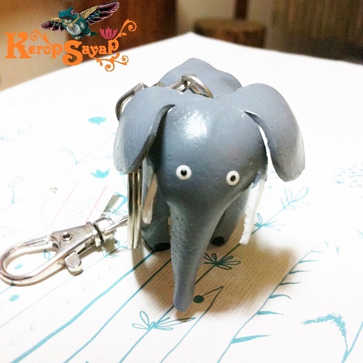 - 革製エレファントキーホルダーL レザークラフト皮ハンドメイド 象ぞう アフリカンサファリ動物
