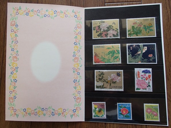 - ●●切手帳ホルダー「花の切手帳」★四季草花図切手等6枚+日本の自然普通切手3枚入り★未使用品!!
