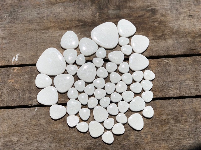 - 懐かしい玉石タイル モザイクタイル 貫入ホワイト 200g入り T-09 タイルバラ売り 内装外装タイル 床タイル 床材